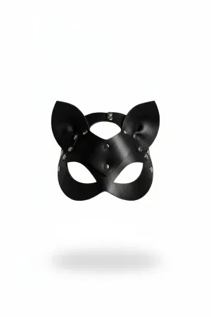 Black Mask Cat Ear Leather Face Mask with Staple Detail - APFT789