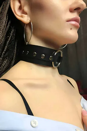 Stylish Leather Choker with Ring Detail and Wide Band Adjustment - APFT671