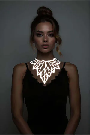 White Reflective Lotus Choker Necklace, Stylish Laser Cut Necklace - APFT1416