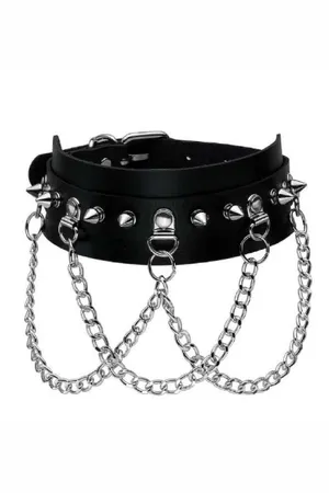 Leather Choker with Nail Detail, Spiked and Chain Collar - APFT975