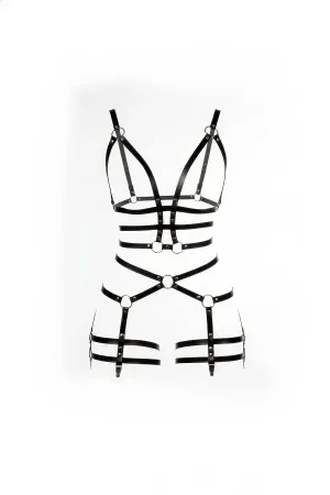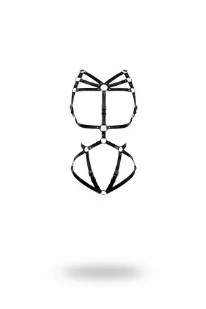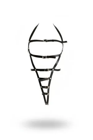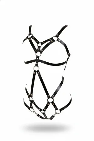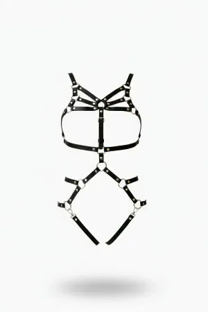 Black Body Harness Leather Material with Full Body Cage Detail - APFT811