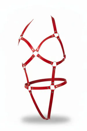Red Body Harness Leather with Metal Ring Detail - APFT860