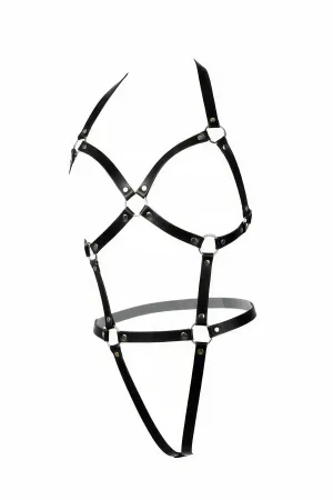 Black Body Harness Faux Leather with Metal Ring Detail - APFT820