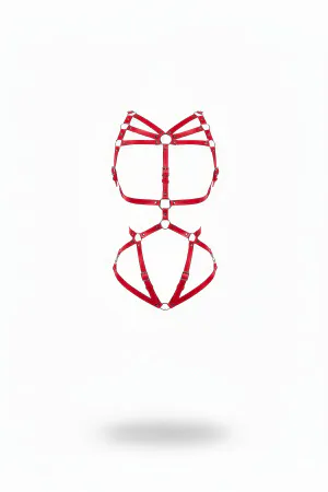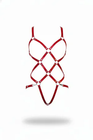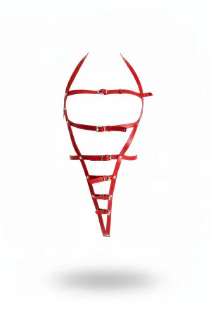 Red Body Harness Leather Cage Structure with O Ring Detail - APFT811