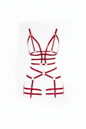 Red Body Harness Faux Leather Full Body Ring Detail - APFT820