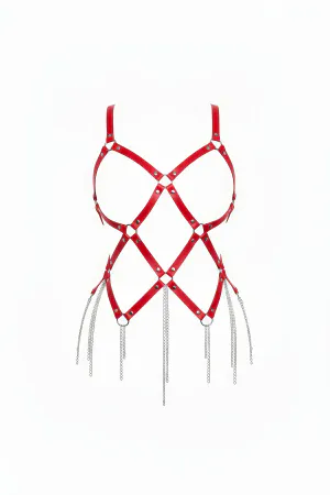 Red Body Harness Faux Leather Chain Tassel Detailed - APFT950