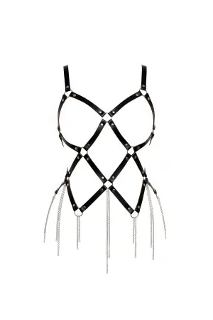 Black Body Harness Chain Detailed Leather Body Accessory - APFT950