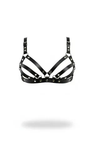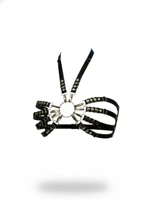 Black Chest Harness Faux Leather Adjustable with Staple Detail - APFT733