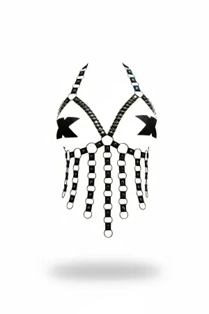 Black Chest Harness Chain Detailed Metal Ring Body Accessory - APFT567