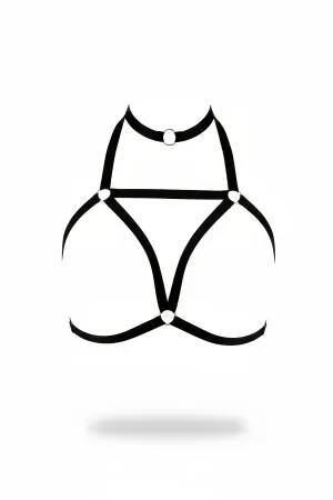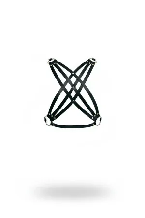Black Chest Harness with Cross Band Detail and Metal Ring - APFT553