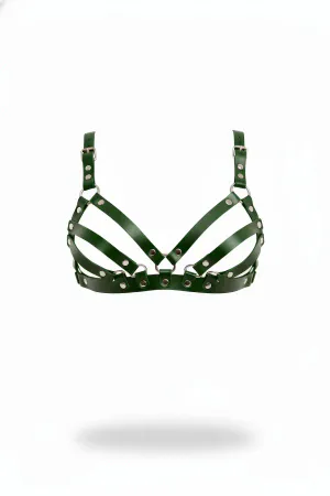 Dark Green Chest Harness Leather Adjustable with Staple Detail - APFT733