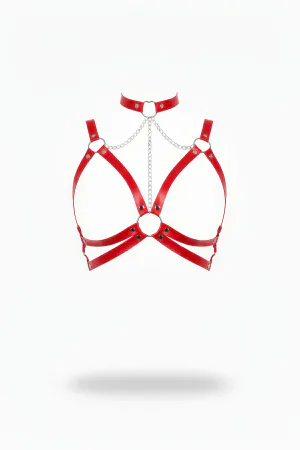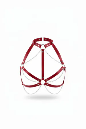 Red Chest Harness Chain Detailed Leather Accessory - APFT964
