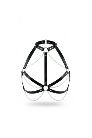 Black Chest Harness Leather Chain Detailed Body Accessory - APFT796