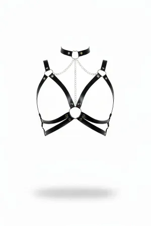Black Chest Harness High Collar with O Ring Detail - APFT67