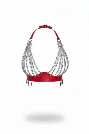 Red Chest Harness Adjustable Body Accessory with Leather Chain Detail - APFT796