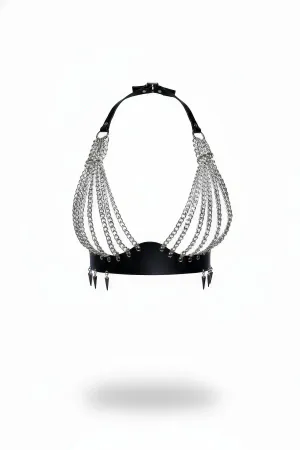 Black Chest Harness Leather Choker with Chain Detail - APFT797