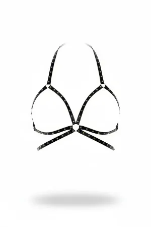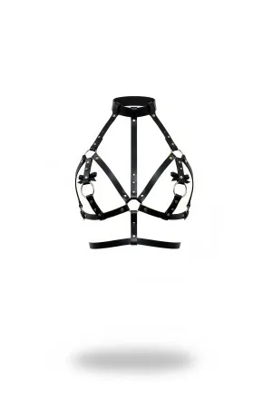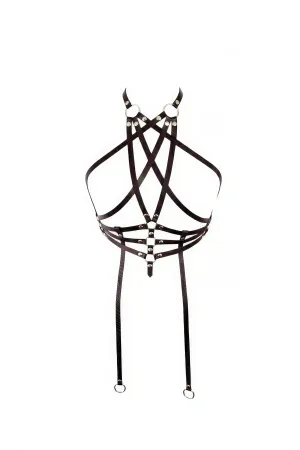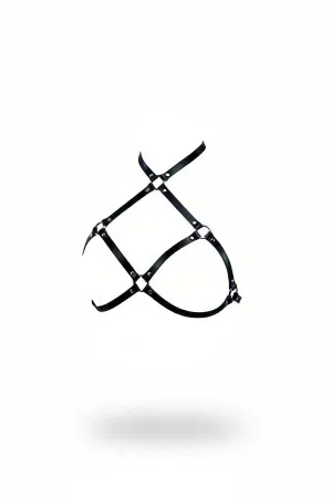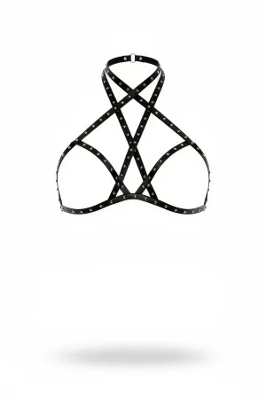 Black Chest Harness Cross Leather with Staple Detail - APFT501