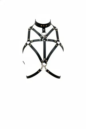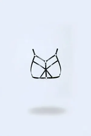 Black Chest Harness Cage Detailed Faux Leather Body Accessory - APFT349