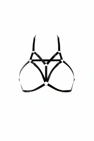 Black Chest Harness Ring Detailed Cross-Banded Body Accessory - APFT34