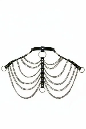Black Chest Harness with Chain Detailed Neck Collar - APFT401