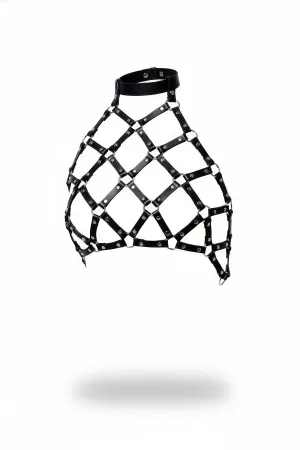 Black Chest Harness Leather High Collar with Cage Detail - APFT314