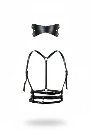 Black Chest Harness with Metal Ring Detail and Geometric Band - APFT352