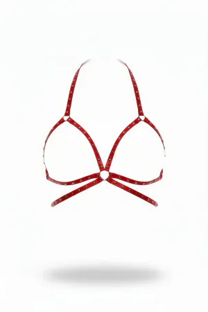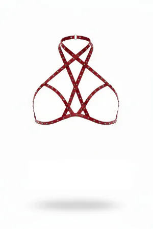 Red Chest Harness with Leather Studded Neck Detail - APFT501