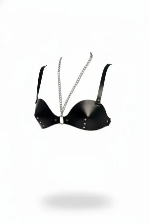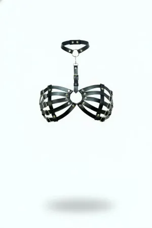 Black Chest Harness Leather Cage Detailed Bralette - APFT224