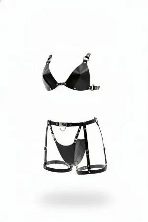 Black Chest Harness Faux Leather O-Ring Bralette - APFT190