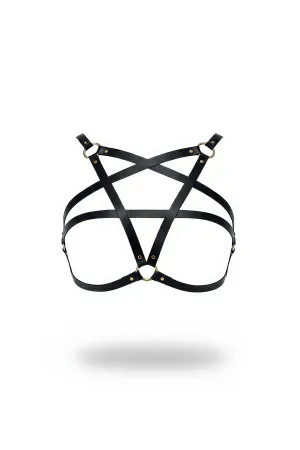 Black Chest Harness Star Detailed Faux Leather Body Accessory - APFT167