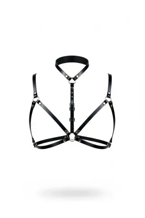 Black Chest Harness High Collar with Shiny Leather Buckle - APFT1405