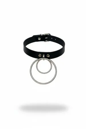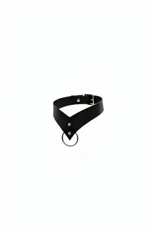 Black Choker with Leather Ring Detail - APFT1370
