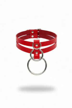 Red Choker Thick Leather with O Ring Detail - APFT241