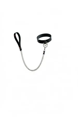 Black Choker with Leather Chain and Large Ring - APFT407