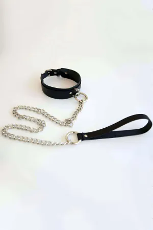 Black Choker with Thick Leather Chain Detail - APFT282