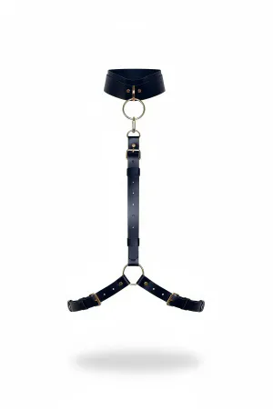 Black Choker Leather Body Harness with O Ring Detail - APFT420