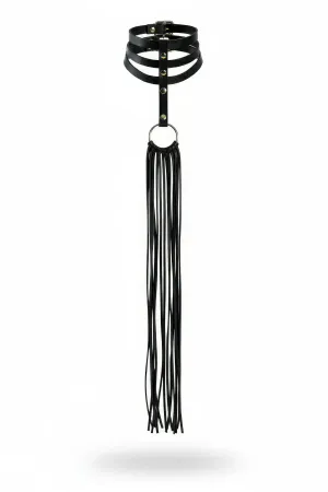 Black Choker Leather Chain Detailed Collar Necklace - APFT1071