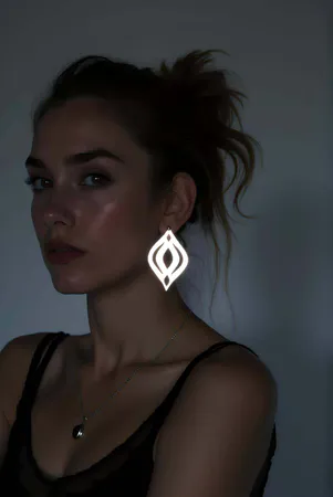 White Reflective Abstract Women's Face Earrings, Stylish Laser Cut Earrings - APBJ005