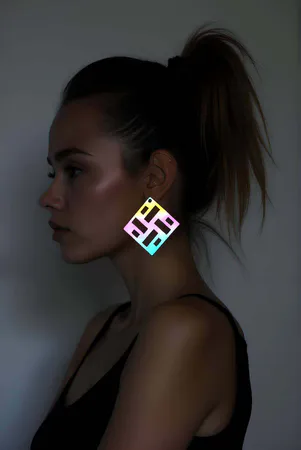 Rainbow Reflective Square Earrings, Stylish Laser Cut Earrings - APBJ012