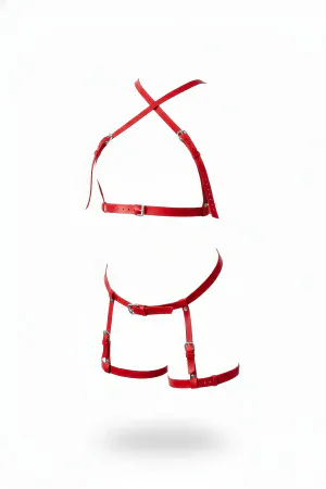 Red Garter Harness Faux Leather with Adjustable Buckle - APFT957