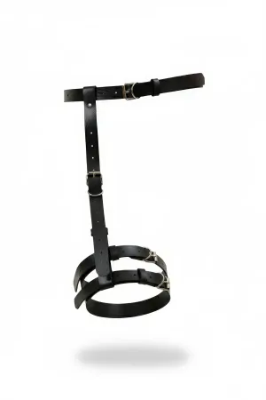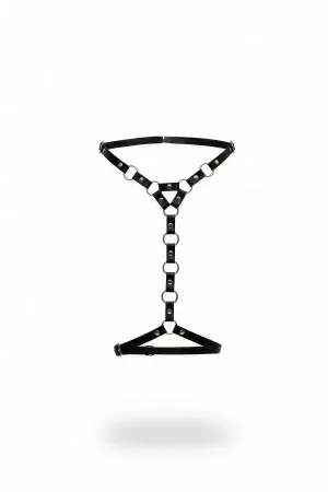 Black Garter Harness Adjustable with Leather O-Ring Detail - APFT942