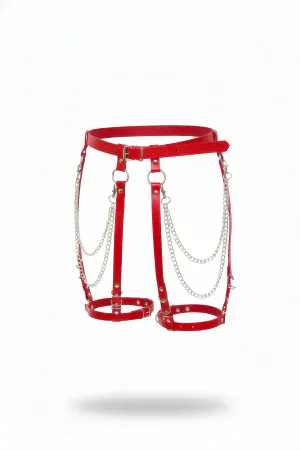Red Garter Harness with Chain Detail and Faux Leather Buckle - APFT958