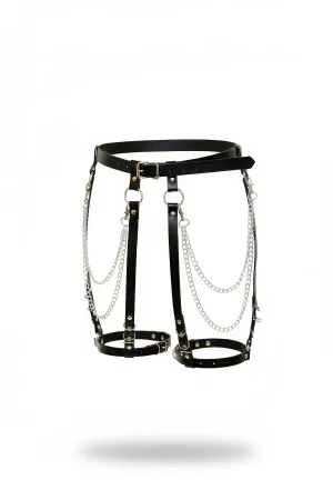 Black Garter Harness Chain Detailed Faux Leather Body Accessory - APFT958