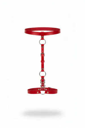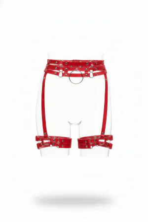 Red Garter Harness with Faux Leather Ring Detail - APFT773
