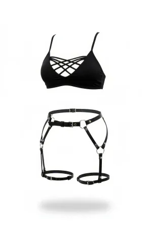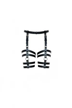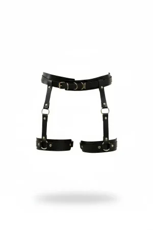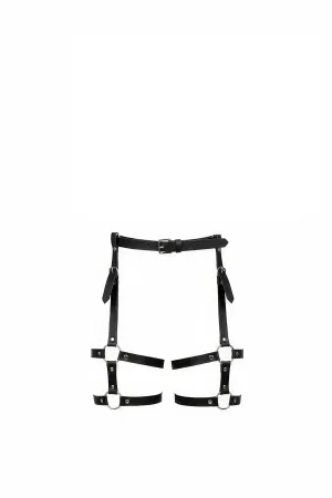 Black Garter Harness with Leather Buckle and Metal Ring Detail - APFT758