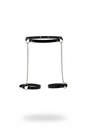Black Garter Harness Chain Detailed Leather Leg Accessory - APFT807