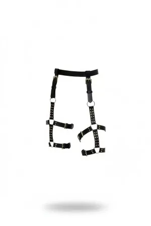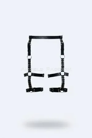 Black Garter Harness Leather Studded Ring Detail - APFT862