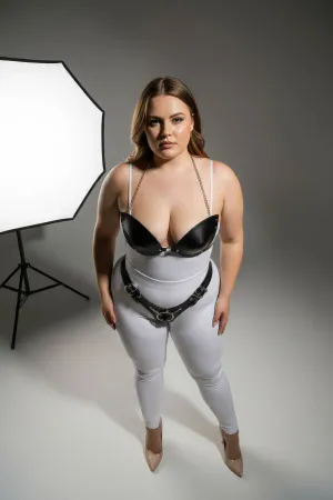 Plus Size Black Women's Harness Suit with Chain Detail and Fancy Leather Look - APFT1169