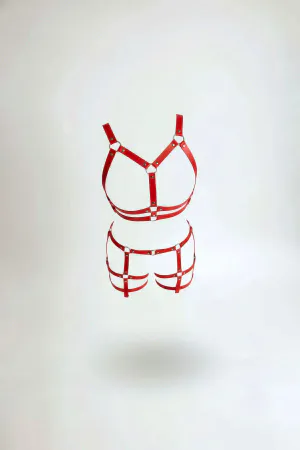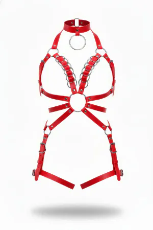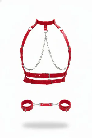 Red Harness Suit Chain Detailed Leather Body Set - APFT720