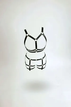Black Harness Suit Faux Leather Adjustable Body Detail - APFT718